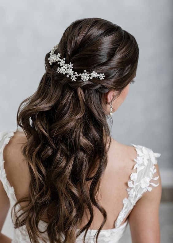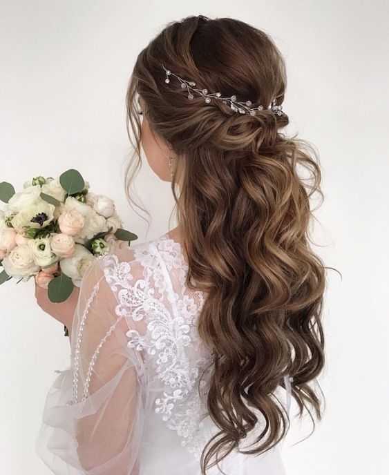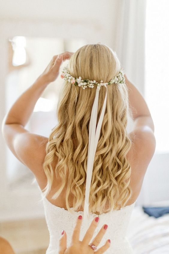 公主頭也是十分受新娘喜愛的髮型之一,簡單地綁上一條半馬尾,再於加上花花或珍珠等頭飾,甜美又帶幾分俏皮感!記得要用電髮棒稍稍將頭髮先夾成捲髮,這樣髮型的線條感和蓬鬆度會比較明顯!