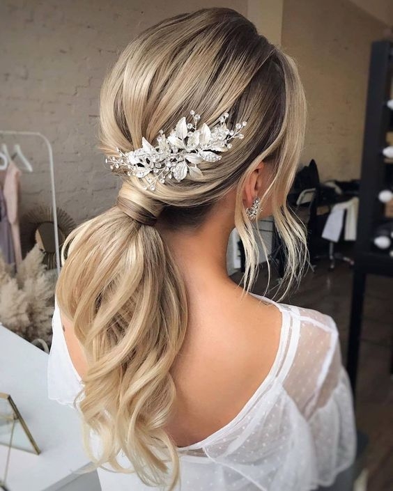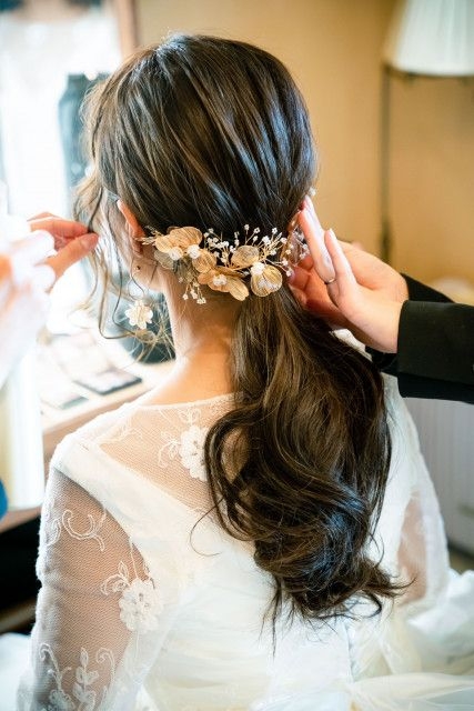 低馬尾是近年大熱的韓系新娘髮型之一,絕對是優雅氣質之選!搭配一點編髮和小配飾,像是絨質絲帶蝴蝶結、小巧的髮飾等,簡單地為髮型作點綴,優雅且不誇張~相反太大的頭飾會有種顯老的感覺。