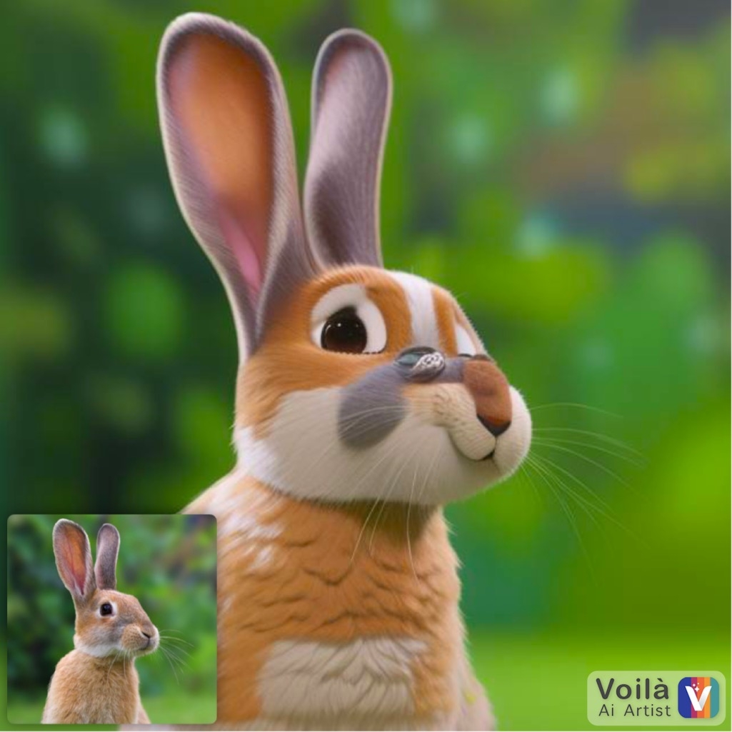 第二種風格則是「3D Cartoon」,顧名思義就是會變成3D卡通人物,超推薦使用這種風格,超唯美純淨!經AI繪圖後,所有上載的圖片都猶如走入宮崎駿的童話世界,變成裡面的卡通角色,不說還以為真的就是劇照!說真的,像不像《愛麗絲夢遊仙境》中的白兔先生,小編覺得超像~