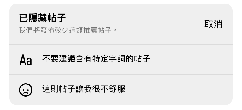 雖說Instagram會根據你的喜好來派送帖文,但有時候總會不斷收到不感興趣廣告而感煩厭,現在用家不只可點撃「沒興趣」來隱藏帖文,還可新增不想看到的「字詞」、「短語」或「表情符號」,讓Instagram更準確地幫你濾掉不感興趣的資訊!