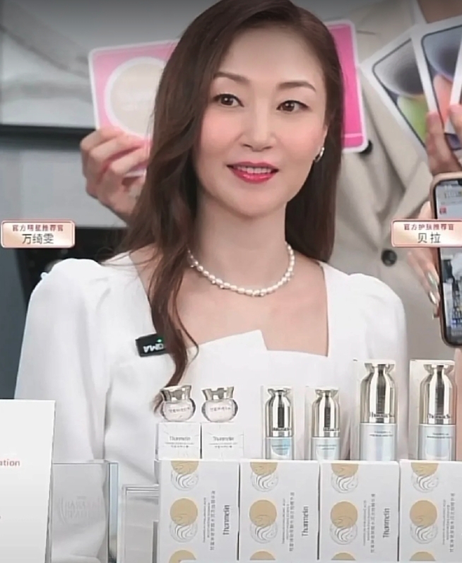 近來萬綺雯再次現身直播帶貨賣護膚品,她連踩8小時開直播非常勤力,直播中她化上精緻妝容,身穿一身純白色套裝配上珍珠項鏈,可見她保養得宜,完全看不出歲月的痕跡。網民都大讚她的樣貌仍停留在25年前的劇集《我和殭屍有個約會》中的「馬小玲」,甚至愈來愈好看。