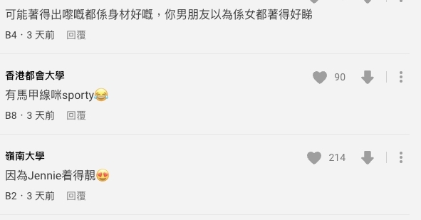 有網民認為內衣褲的牌子根本就不是重點,主要是近年CK被稱為「男女神收割器」,在全球尋找了不少知名好身材的男女明星當代言人,其中就有BLACKPINK的Jennie等。當中不少人都有馬甲線,令身體線條看上去比較「Sporty」,很好看:「根本唔係牌子問題,因為條女身材好!」、「可能著得出嚟嘅都係身材好嘅,你男朋友以為係女都著得好睇」