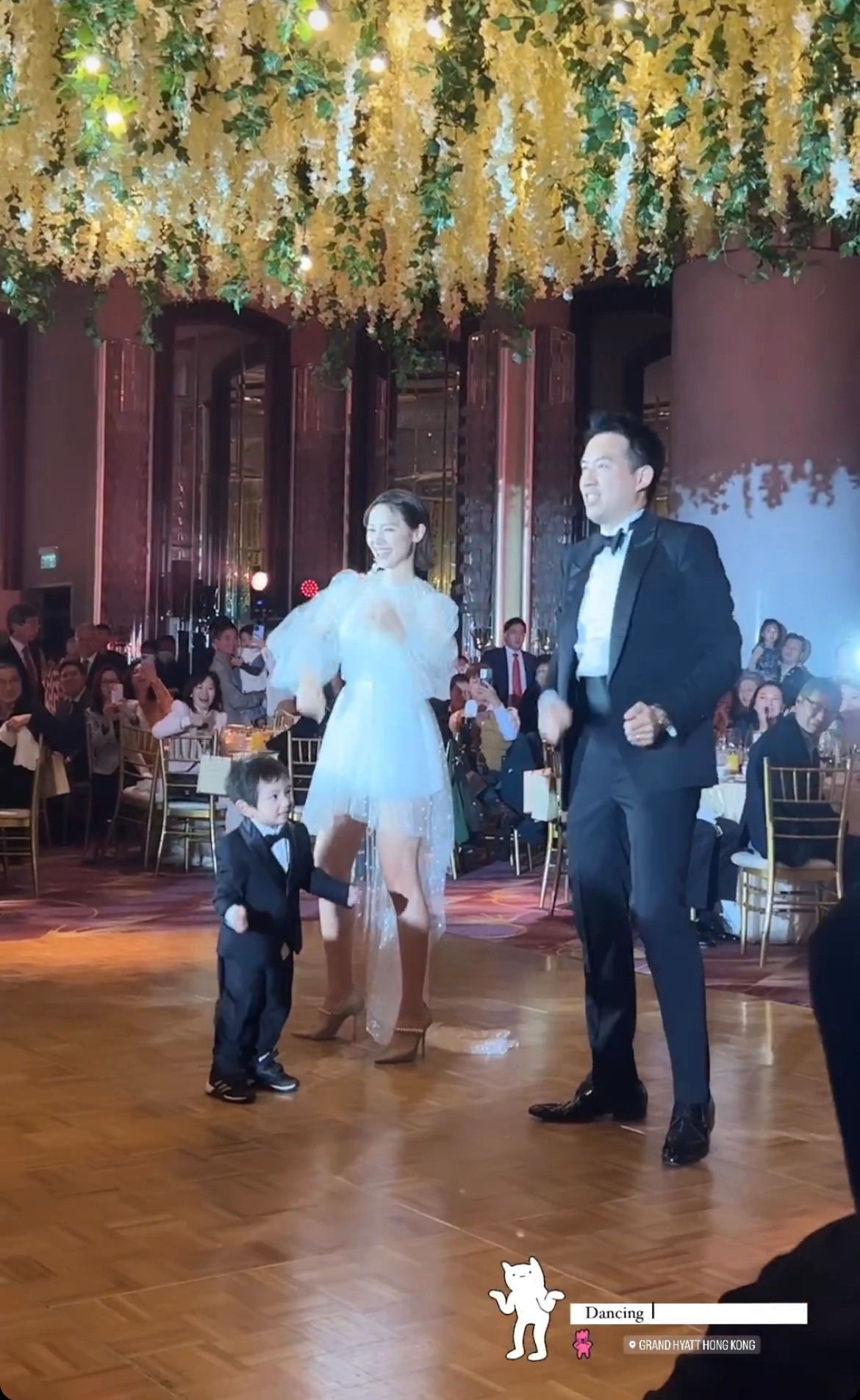 倪晨曦與老公、囝囝在禮宴上跳舞