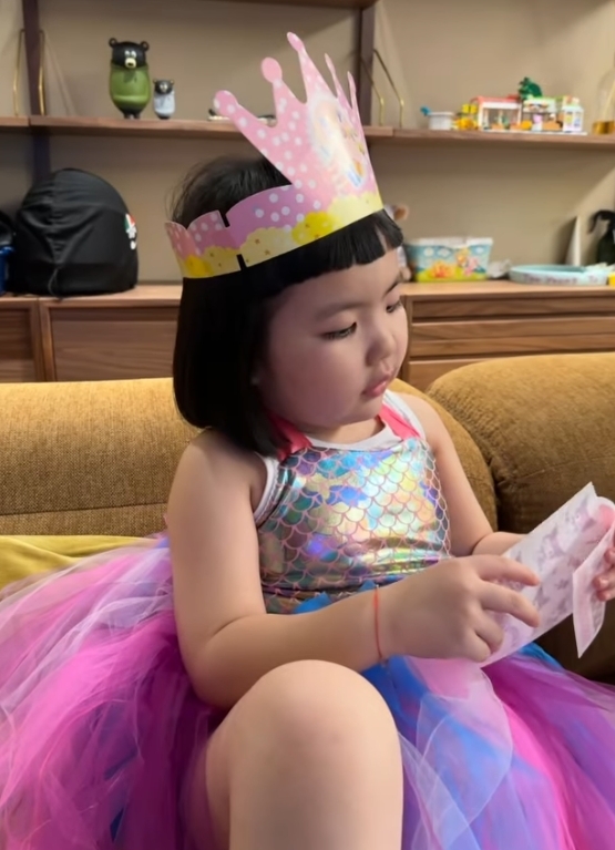 得知自己將要5歲的Lucy興奮得不願睡覺,「李老母」爆料指生日派對結束後,李璨琛努力清潔家裡,但Lucy還是相當興奮,穿著公主裙繼續開Party!就連還是寶寶的妹妹也不願睡覺,哭笑不得的「李老母」,只好陪著兩個女兒倒數生日,還Po陪月姨姨送Lucy的新裙子,相當可愛!