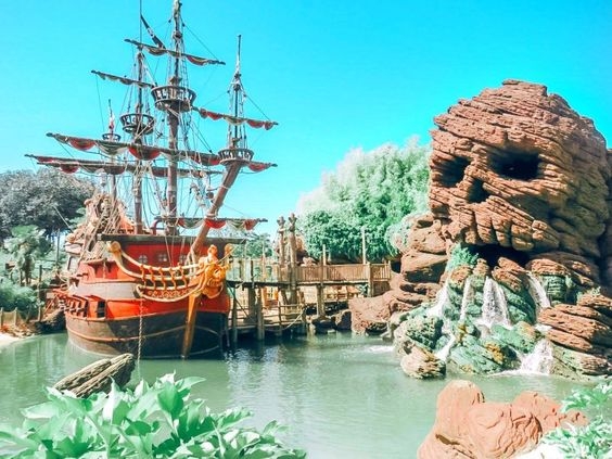 在迪士尼中兩個園區之間不會有重疊的情況,為了讓遊客能完全融入,會利用瀑布的水聲掩蓋背景的聲音聲,超細心!
