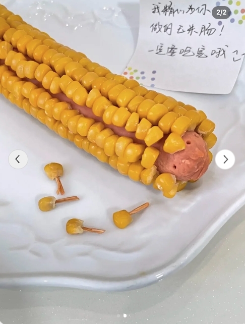 一大早起來,男友發現女友居然給他製作了玉米腸,還留了字條提醒他一定要食完,令他感到十分感動。怎知他一口咬下去後才發現,上面的粟米居然全部都用了牙籤插了在腸仔上,才太狠心了吧!