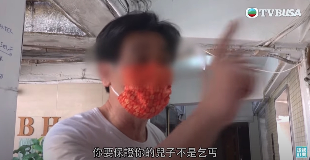 之後他叫攝製隊不要再拍攝「會有報應的,你以後會後悔」,更指這班「行乞者」都有證件。