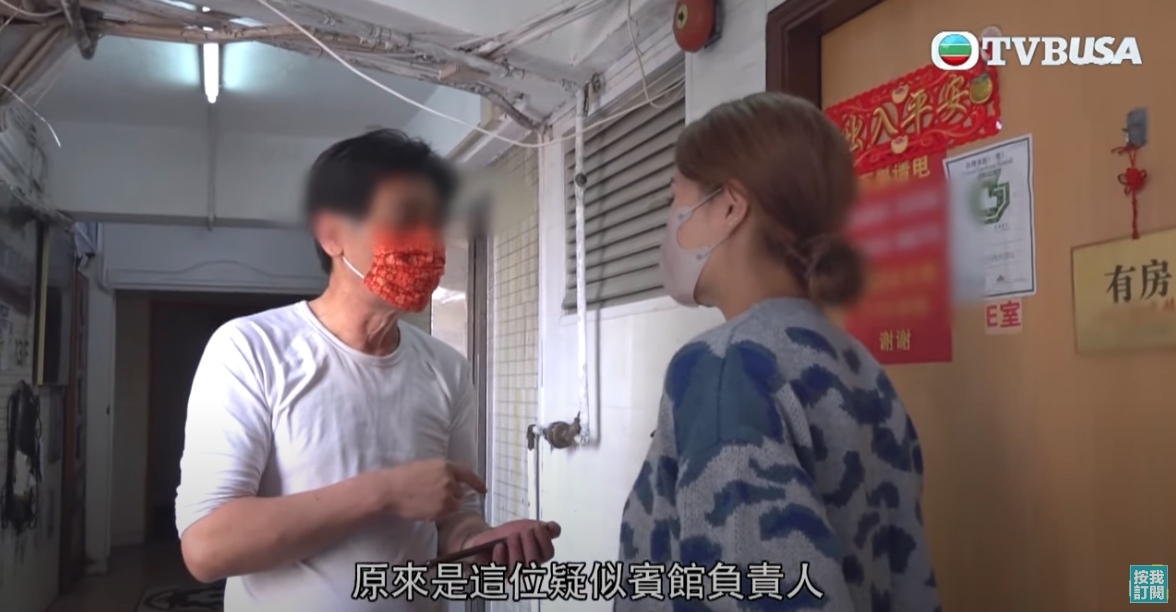 然後攝製隊跟疑似是賓館的負責人稱「在網上租不到房間」,於是負責人便帶同攝製隊去看看其中一個房間,並介紹租金是$280。但當攝製隊跟她表明身份,她就立即否認賓館有很多殘疾人士出入,更立即逃離現場。