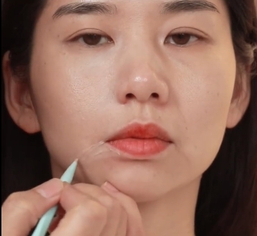 之後同樣拿出化妝掃進行填充和暈染開,經提亮後就會發現木偶紋不見了,而嘴角周圍的暗沉位置也變得明亮起來,凸嘴問題也會改善很多。
