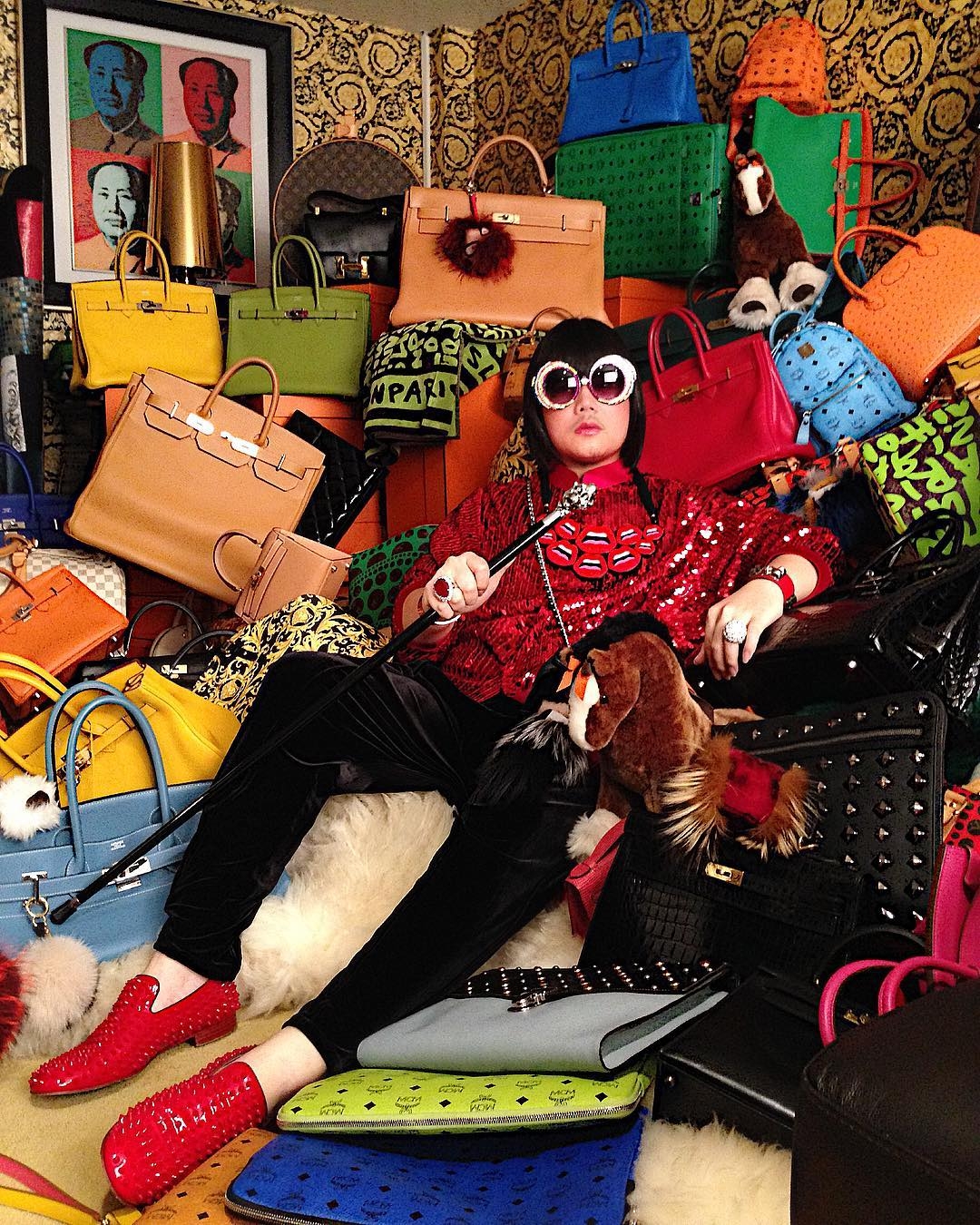 而且他們每次拍照都有標準動作,就是一臉嚴肅的站著或用雙手托腮,十分搞怪又可愛。他們每款手袋都會買2個,有時候會買同一個款式的最大及最小的尺寸做母子裝,形成超大的對比。
