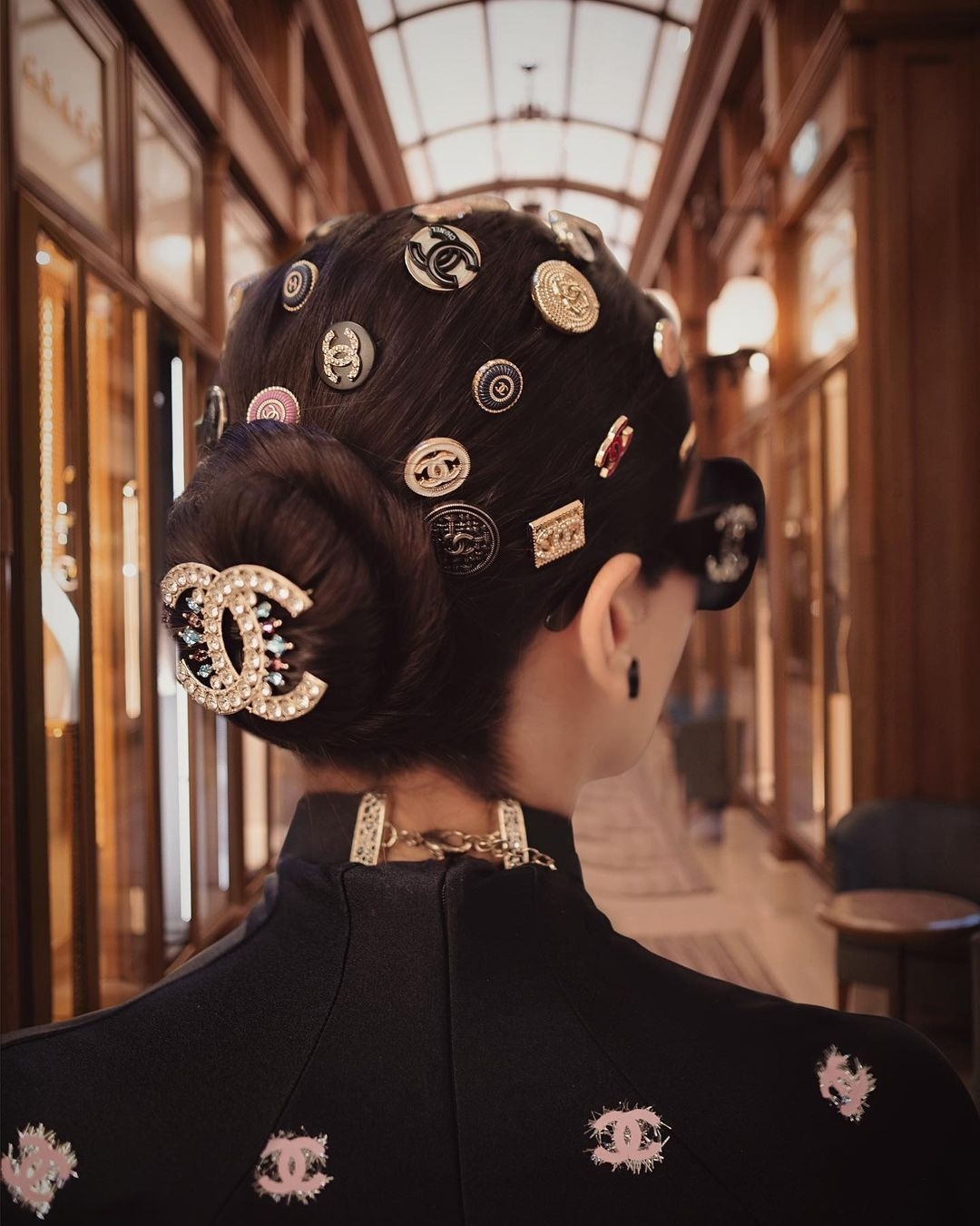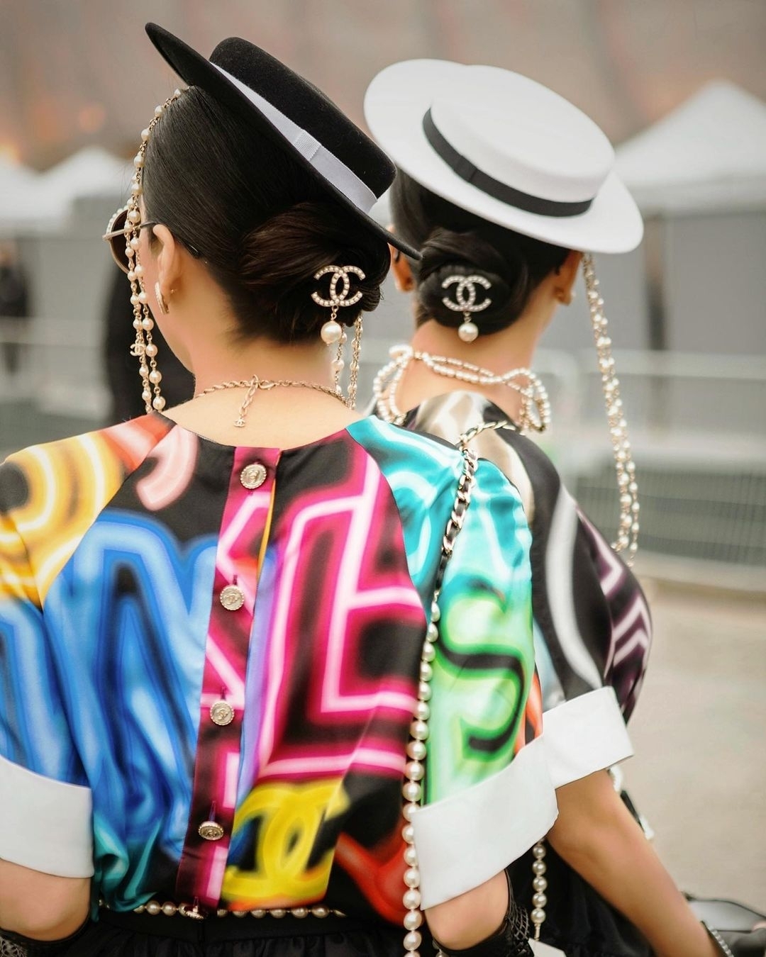 她們會將精品元素與髮型結合,將Chanel的鈕扣變成髮飾,為造型增添不少時尚感。同時大家也可以根據她們Chanel鈕扣的數目,知道兩姐妹的家中有多少套Chanel服飾。