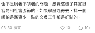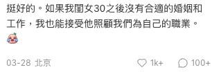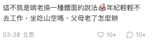 不少網民留言指迪麗的行為其實跟啃老族沒有多大分別,做家務等其實子女也有責任分擔。質疑若是有一天父母去世,迪麗又該如何維持生計?迪麗更說父親甚至勸她快點去做試管嬰兒:「大家一起養!」不過也有網民指如果自己有錢,也願意一直養自己的小孩到老,網友們的爭論不斷。大家又覺得「全職女兒」是啃老嗎?