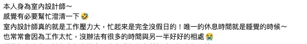 很多人都意想不到,第一名竟然是室內設計師。不少女生覺得另一半是室內設計師的話,就可以把家裡設計得舒適又有品味,而且本人也一定很有美感,就連拍照打卡也不用再擔心。不過有擔任室內設計師的網友留言指自己天天上班幫客人設計,對於自己的家隨便就好,而且有些室內設計師也是不修邊幅的,未必如想象中的美好。大家心目中的另一半理想職業有上榜嗎?