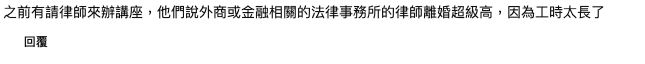 有網友選律師的原因是覺得頭腦好的人,就能生聰明的孩子,而且覺得律師都會比較帥,整天穿西裝,而且很有安全感。可是有律師的妻子則回應說老公的工時超長,而且吵架的時候常常被另一半用道理壓回去,還搞笑說不敢離婚怕會淨身出戶?