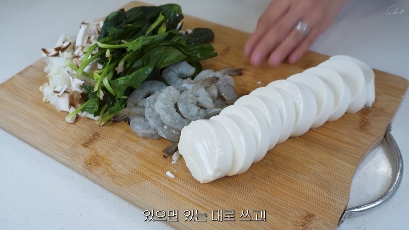 先將蒜頭、洋蔥及香菇或是雪櫃剩下的蔬菜切碎,嫰豆腐也切塊備用。