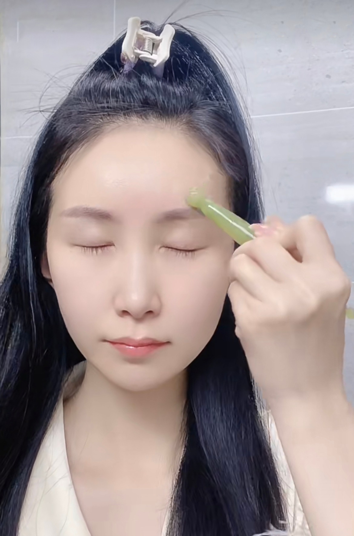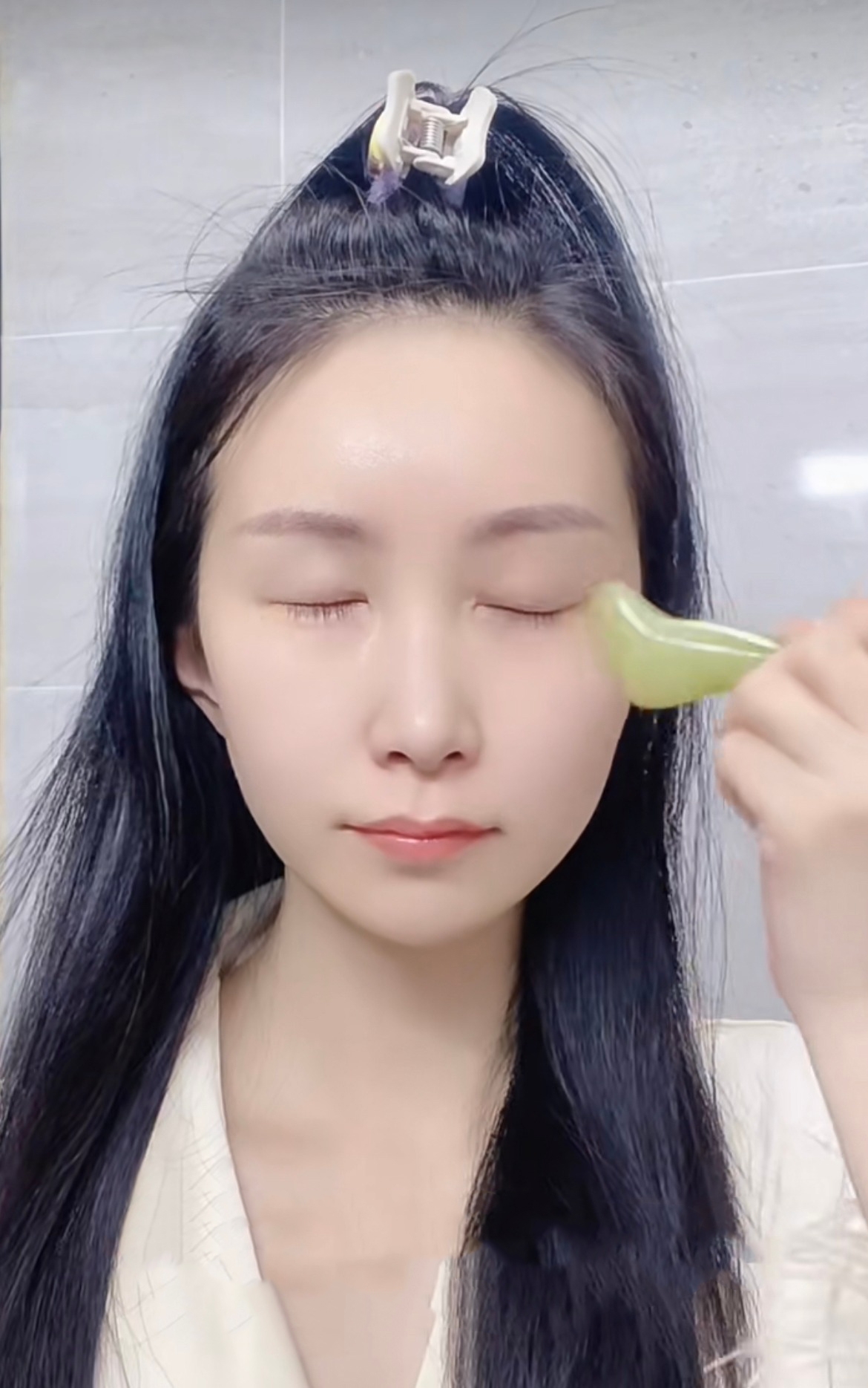 由於眼部刮痧能幫助排出眼部及周圍囤積的毒素,並促進血液循環,所以能有效改善眼部問題,包括黑眼圈、眼袋、眼部浮腫、魚尾紋、其他紋理等,並提升眼部輪廓。以下就來看看美妝博主「靈姐姐吖」的示範吧!