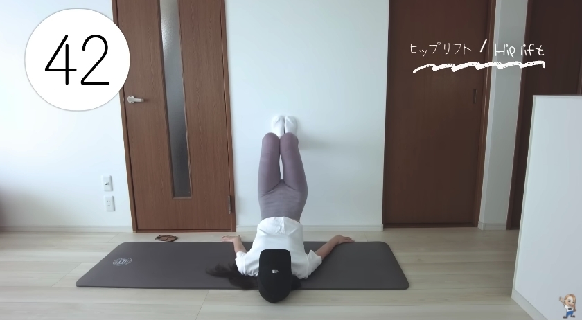 第五個動作是提臀動作,先用腳板踩著牆壁,然後不斷將臀部抬起,雙手可以輕輕放在兩側地下輔助。