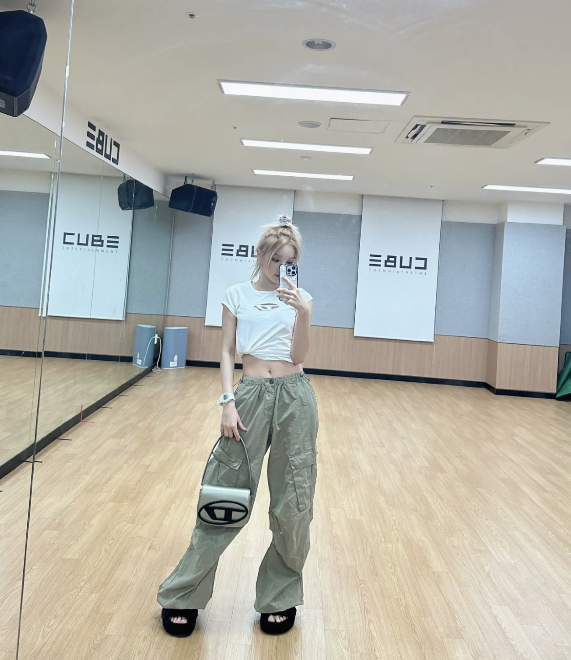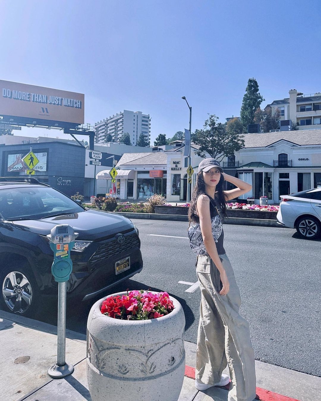 像Jisoo就揀選了近期十分Hit的Diesel削肩背心,再搭配寬鬆的工裝褲和馬鞍包,充滿率性又有反轉魅力!