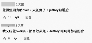 不過有網民看過影片後,就指蝦頭的表現太over,看得出Jeffrey非常尷尬,而且又比起嘉賓的發言次數多。不過亦有網民力撐蝦頭搞笑,應該是為了營造節目效果。