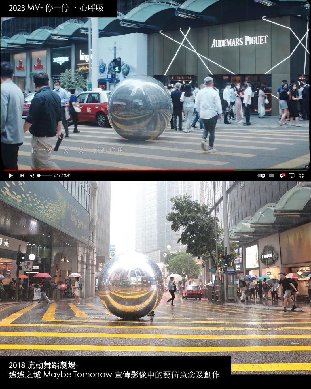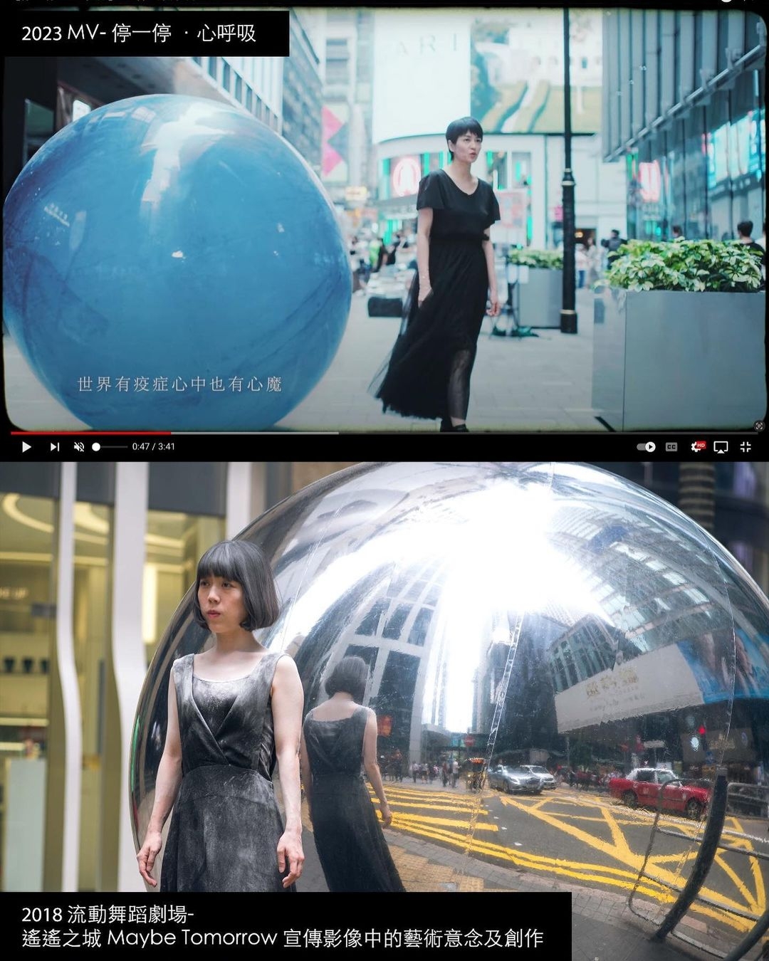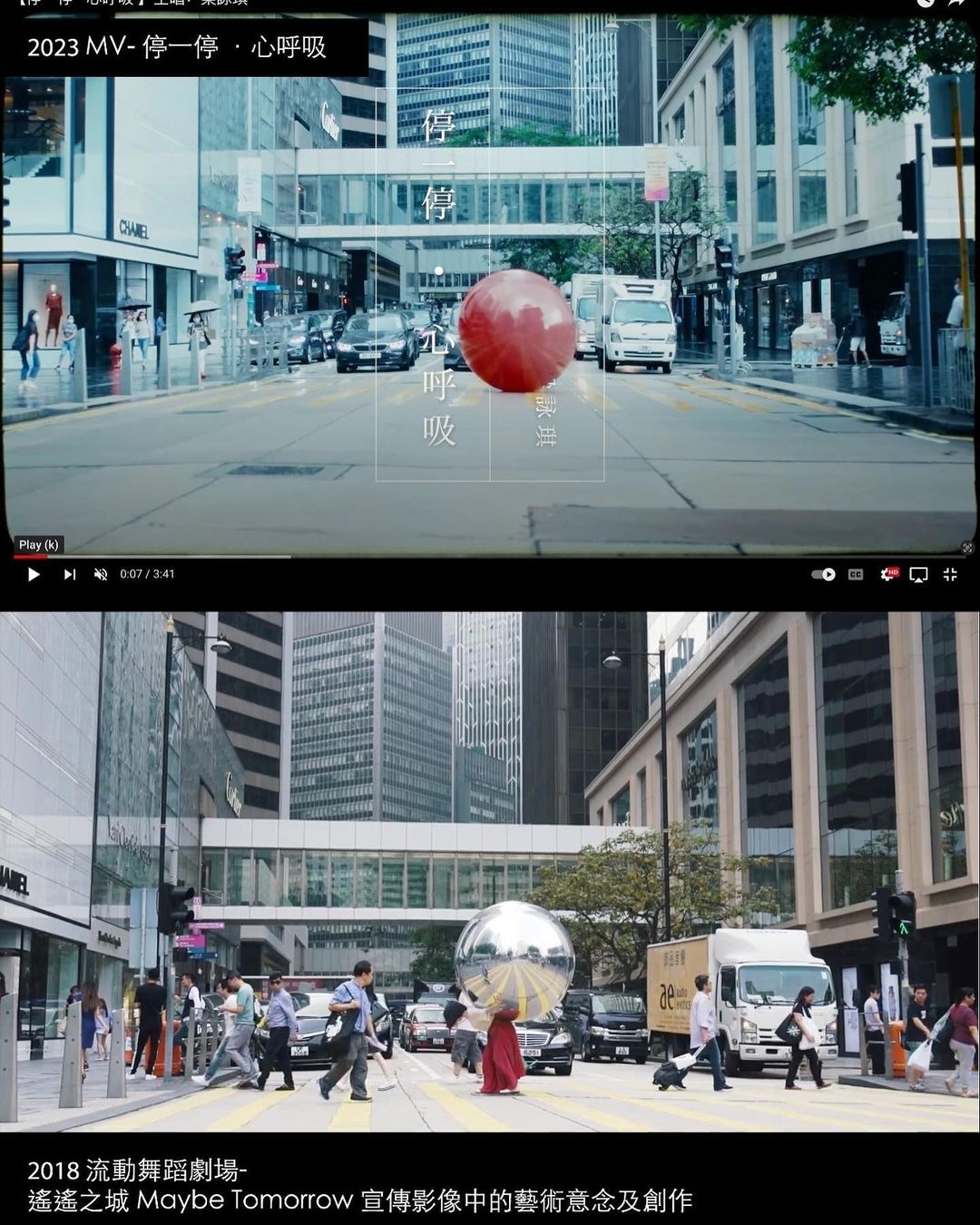 同時,CHLOEOGRAPHY PROJECT還附上多張對比圖,以示證明兩個MV的相似度極高!可見兩個MV都主要以香港街道作為取景地點,畫面構圖又高度雷同,而MV中亦同樣有一個巨型球體。對比之下,確實是有幾分相似!