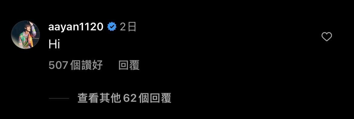 近日休寧凱終於開通了個人IG,炎亞綸也有馬上Follow對方,並留言「Hi」。