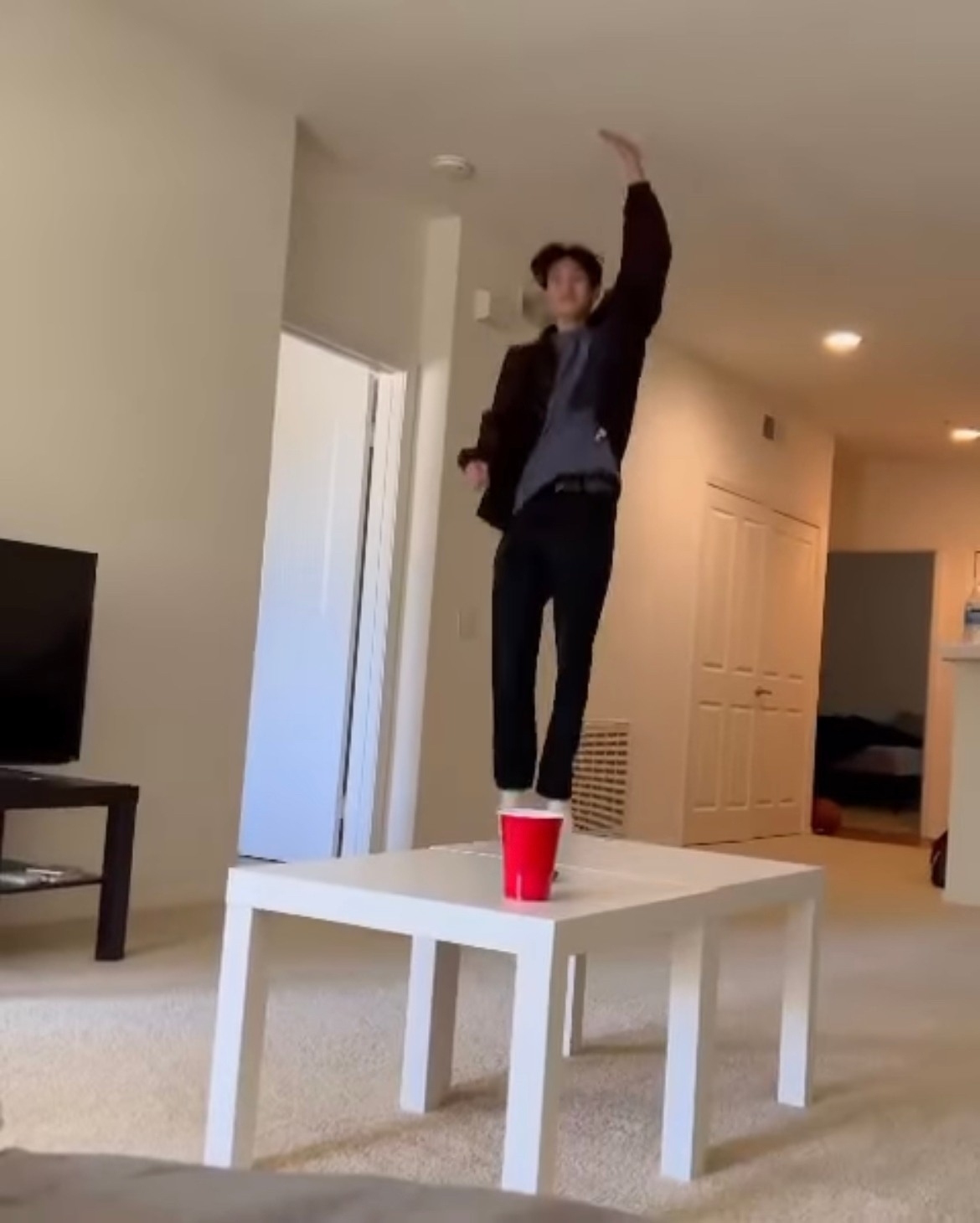 魔童分享了一條影片,只見他在原地輕輕一跳,手就能簡單碰到天花板,再加上影片中的他看起來又高又瘦,因此目測他的身高大概190厘米左右,似足父母身形修長。有不少網民留言:「有種混血的感覺」、「好韓風」、「真的好帥,跟媽媽好像」等。