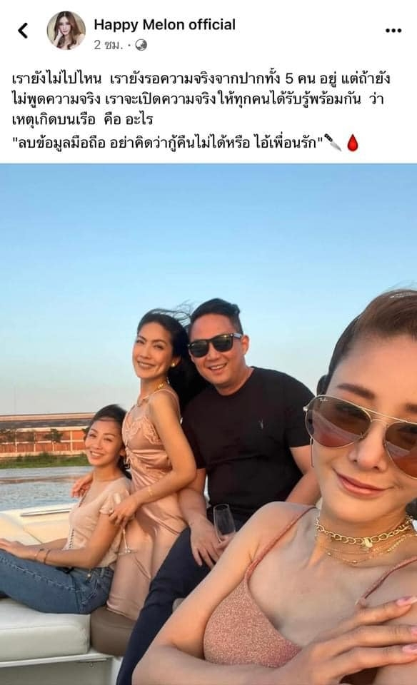 Tangmo母親從一開始相信女兒只是意外身亡,到現在終於肯相信船上5人可能故意導致Tangmo的離世。她對媒體表示,要求船上5人交出2億泰銖的賠償金!Tangmo母親不斷收錢和反口的行為,也令外界再度為Tangmo的離去而感到痛心。