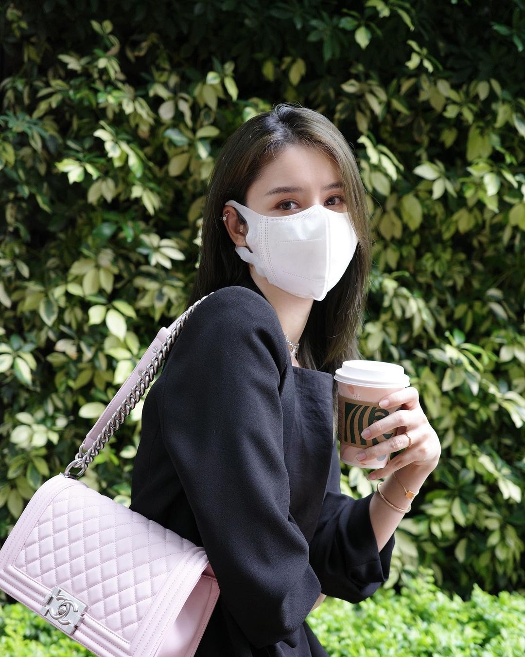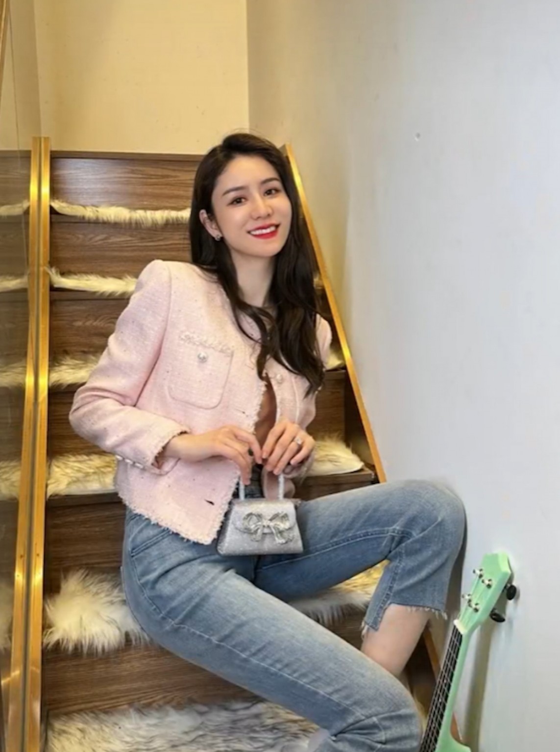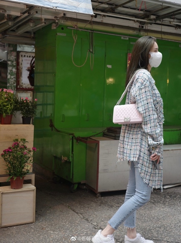 近日張馨月在社交網分享了一段穿搭影片,可見她穿上粉紅色小香風套裝,下身就配搭了窄身的7分牛仔褲,再穿上白襪、白波鞋,充滿著春天的感覺。最後她甚至拿出一個銀色閃鑽蝴蝶結手袋作配搭,看上去貴氣十足。