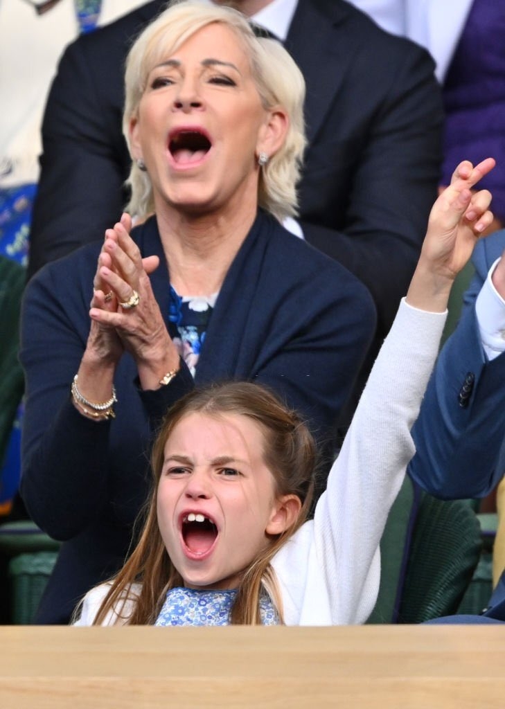 而其中最搶鏡的莫過於是夏洛特小公主喇~在觀賽期間,有網民就捕捉到她豐富的表情,一時手指交叉振臂歡呼,一時又戴上墨鏡扮型,好似講緊:姐就是女王!當比賽進行到高潮的時候,還會緊張捂臉,和媽媽的表情超似!