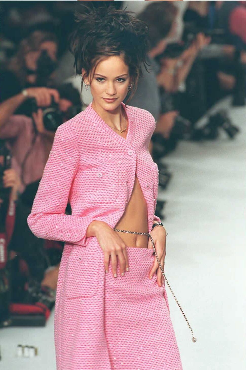 除了黑白條紋的泳衣,你也看到芭比們總是身穿粉嫩色洋裝示人,據說是為了致敬1990年代的Chanel。在1990年代的Chanel秀場就曾經推出顏色粉嫩,代表女性的套裝、而且手袋和化妝盒都是糖果粉色的超可愛!