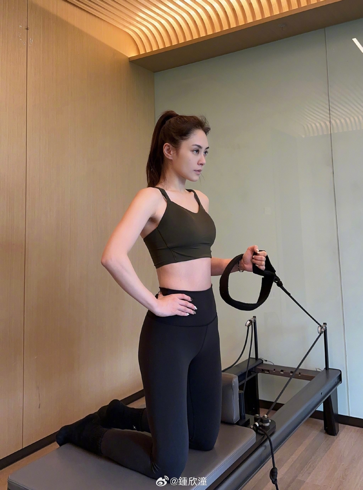 早前阿嬌在社交網上傳了數張自己做普拉提的照片,照片中的她身穿運動Bra Top及瑜伽褲,露出纖腰及結實手臂,相信很快就會出現馬甲線。
