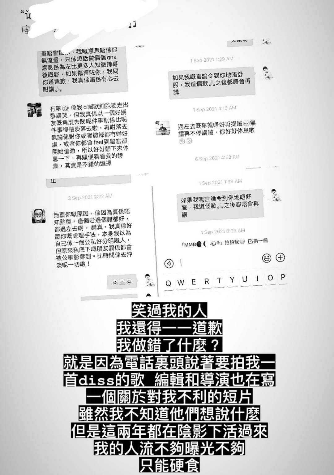 阿晶又曾經貼出與Doris的對話,她向對方表示:「如果我真係有講過你嘅嘢要寄去我度,你po出嚟,但係依加呢隻死貓我唔會食,都希望你哋唔好再單單打打我,你有證據你就po出嚟。」Doris回覆:「第一句先話sorry宜家又話單單打打 我都唔知你邊一句先係真」,阿晶:「我係sorry我拎錯咗你嘅嘢 但係你哋咁樣屈我就唔得」Doris問:「我嘅嘢又點會寄去你屋企呢」等。其後有人留言指斥Doris,Doris回覆對方:「我……好似從來都冇講過搶Job。」但在阿晶的千字文遺書中,她再次澄清自己從來沒有搶過任何人Job,網友也湧到Doris的IG指斥她。