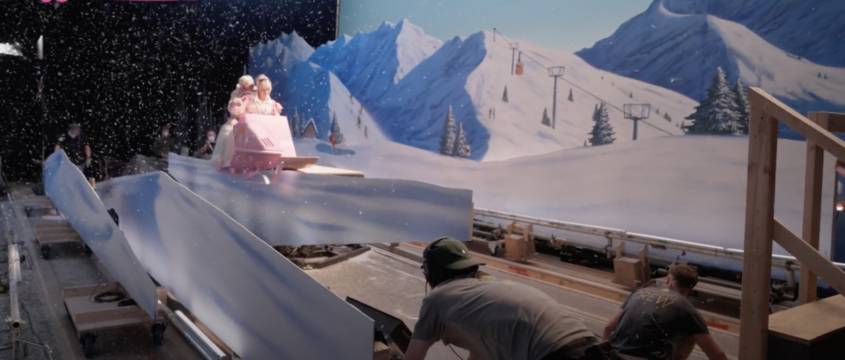 電影中最令人印象深刻的一幕,絕對是芭比和肯尼乘搭交通工具前往真實世界的過度場景。可能你會認為這些一幕幕的夢幻背景是由電腦特效製作而成,但原來全部是廠棚裏搭建出來的。幕後團隊使用了古老的默片技術, 每個物件都是立體模型組成,背景也都是繪畫而成;務求以戲劇手法來呈現二維推軌鏡頭,真的超用心製作!