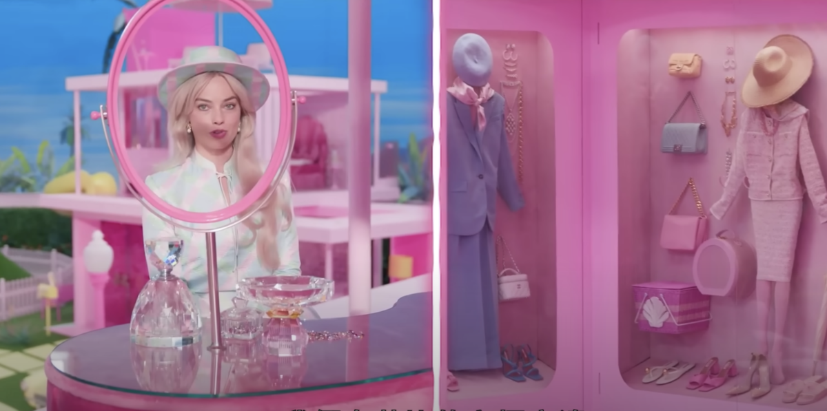 Margot Robbie在電影中有著千奇百怪的芭比髮型,例如蓬鬆高馬尾、豐盈長編髮、俏皮短髮等,但原來這些都是假髮,要將Margot Robbie變身真人芭比,幕後的化妝造型功力絕不可少!相信不少觀眾對芭比的最深刻印象就是放在透明紙盒裏的她,打開紙盒就能幫她換裝打扮;而在夢幻屋裡這其實就是芭比的美麗衣櫃,所有的衣服、飾品、手袋都在裏面,轉個圈就能直接穿上身,超神奇!