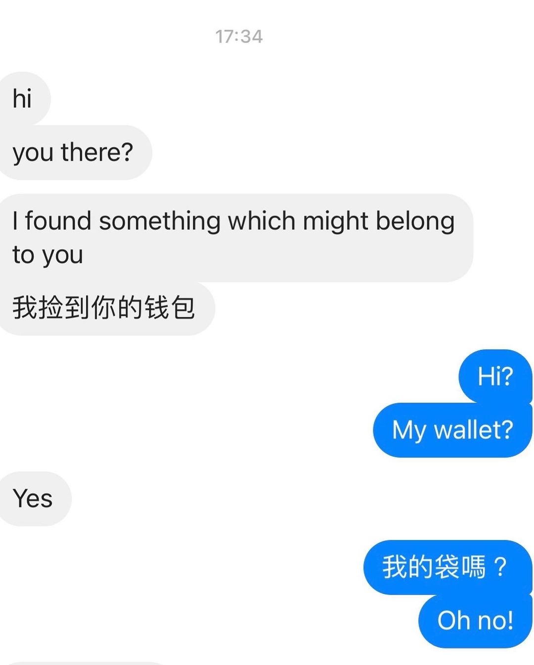 Coffee還PO出與好心人的私訊對話,當中對方還大讚Coffee很出名,而Coffee亦非常感謝對方撿到她的手袋,會面時兩人更合照了。