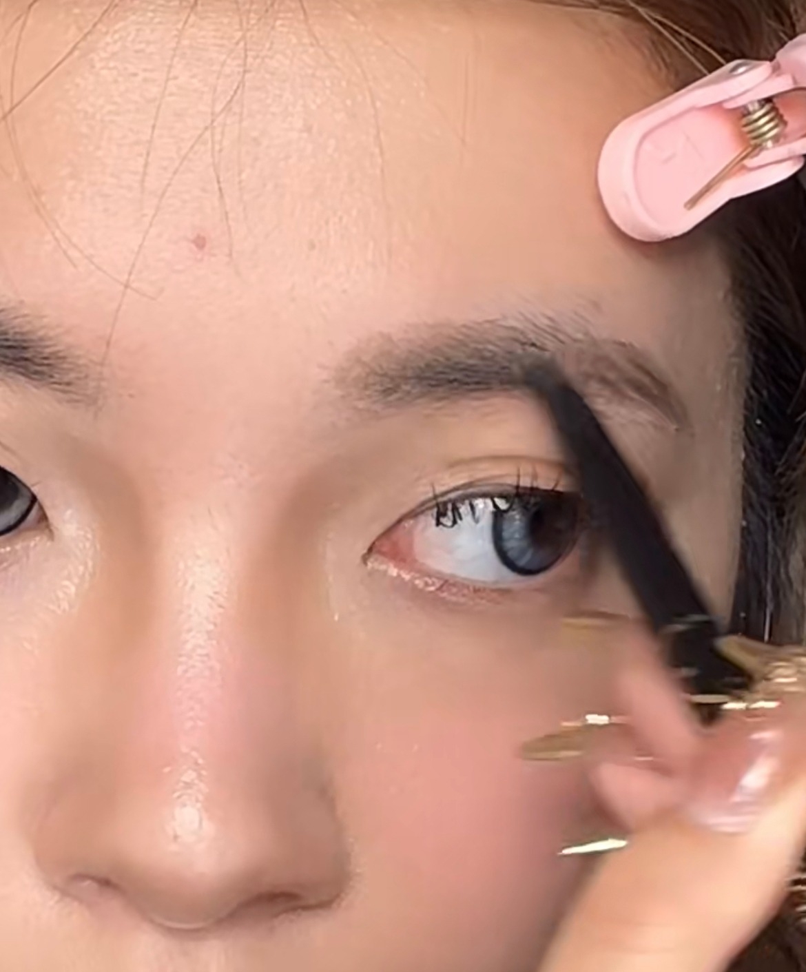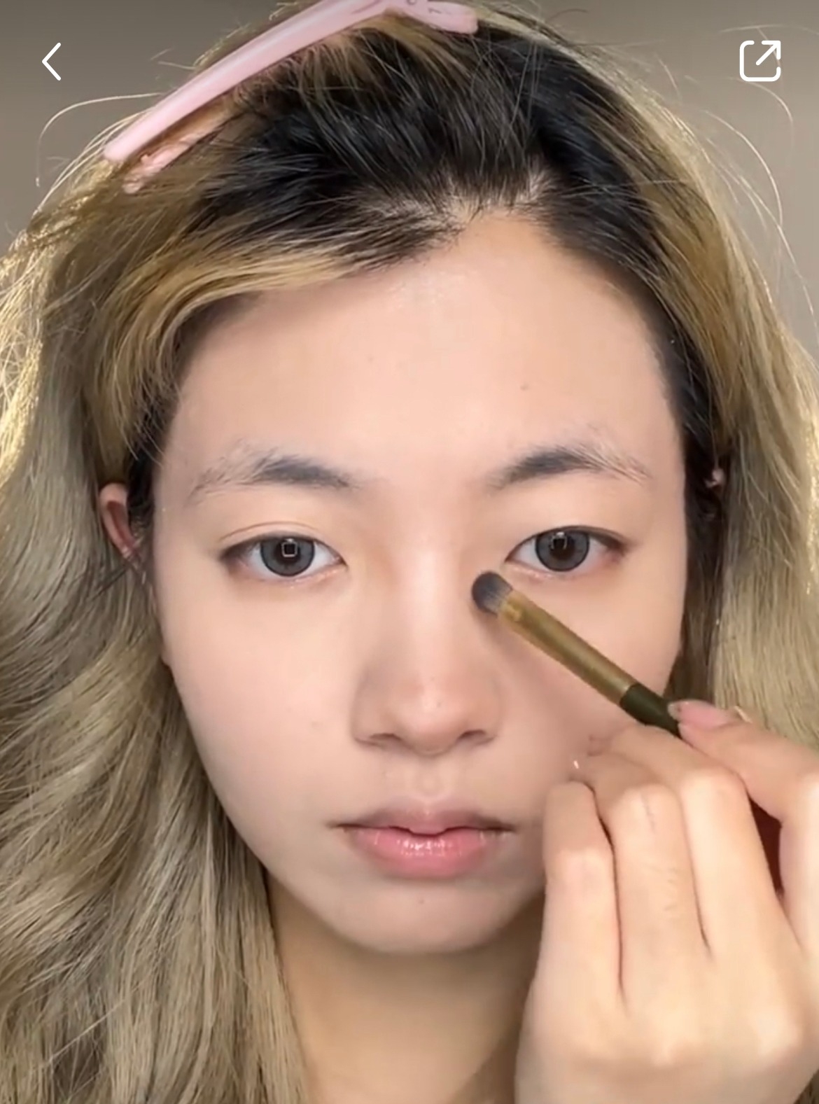 再沾取深啡色再度加深下眼瞼和眼頭,眼尾則畫得稍微上揚一點,之後再加深一下卧蠶。
