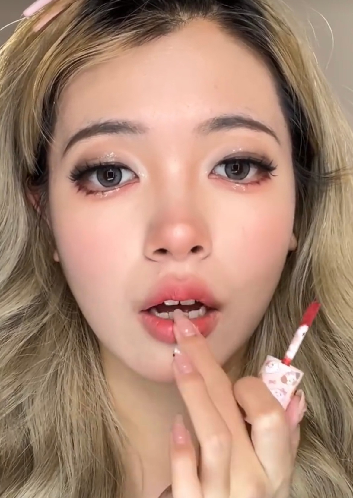 最後塗上桃紅色的唇蜜、高光就完成了!