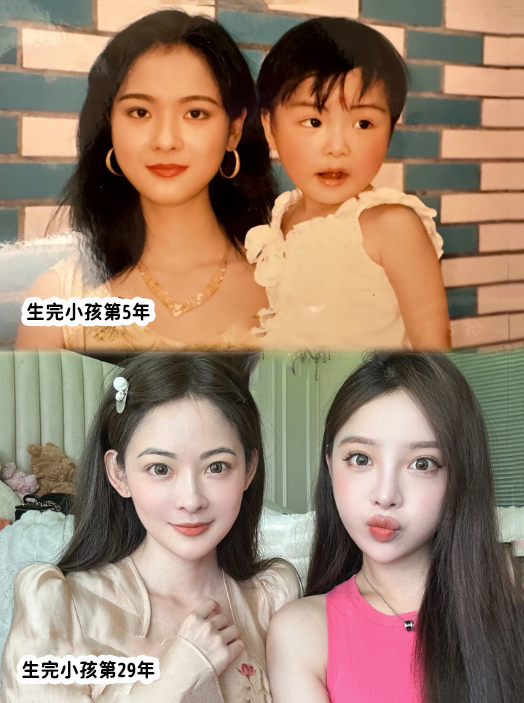 同時,女兒更在社交平台PO出媽媽年輕時的相片,對比之下,可見媽媽生完孩子後反而狀態更好,從而得出「堅持保養+調整好心態」真的超級重要!