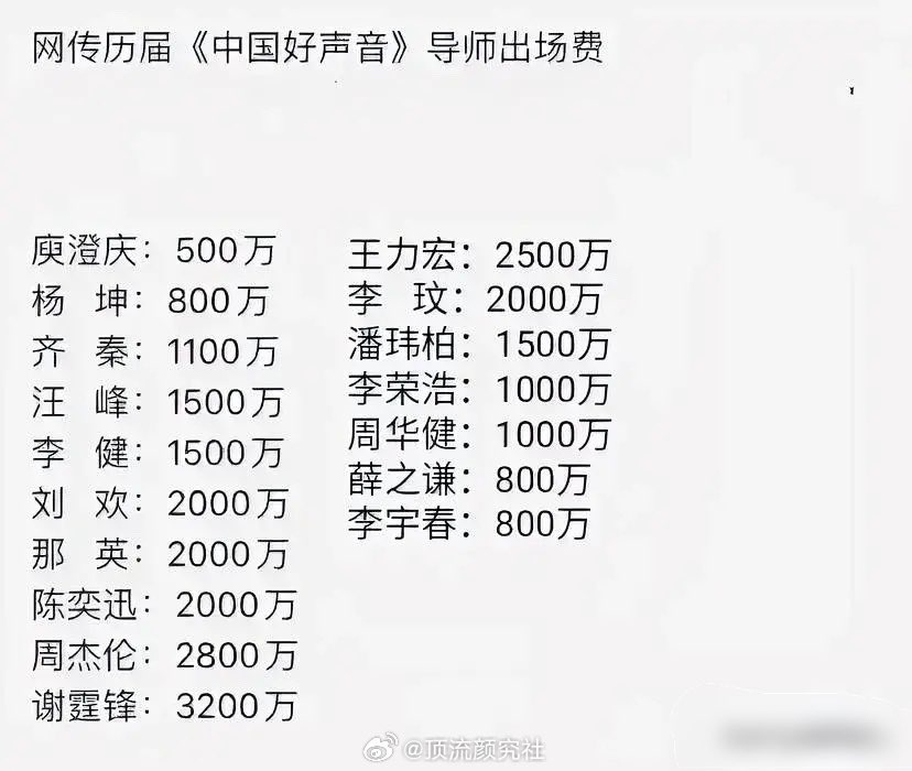 《中國好聲音》宣佈停播,導師出場費流出!周杰倫3000萬,陳奕迅2100萬,哈林只有530萬?