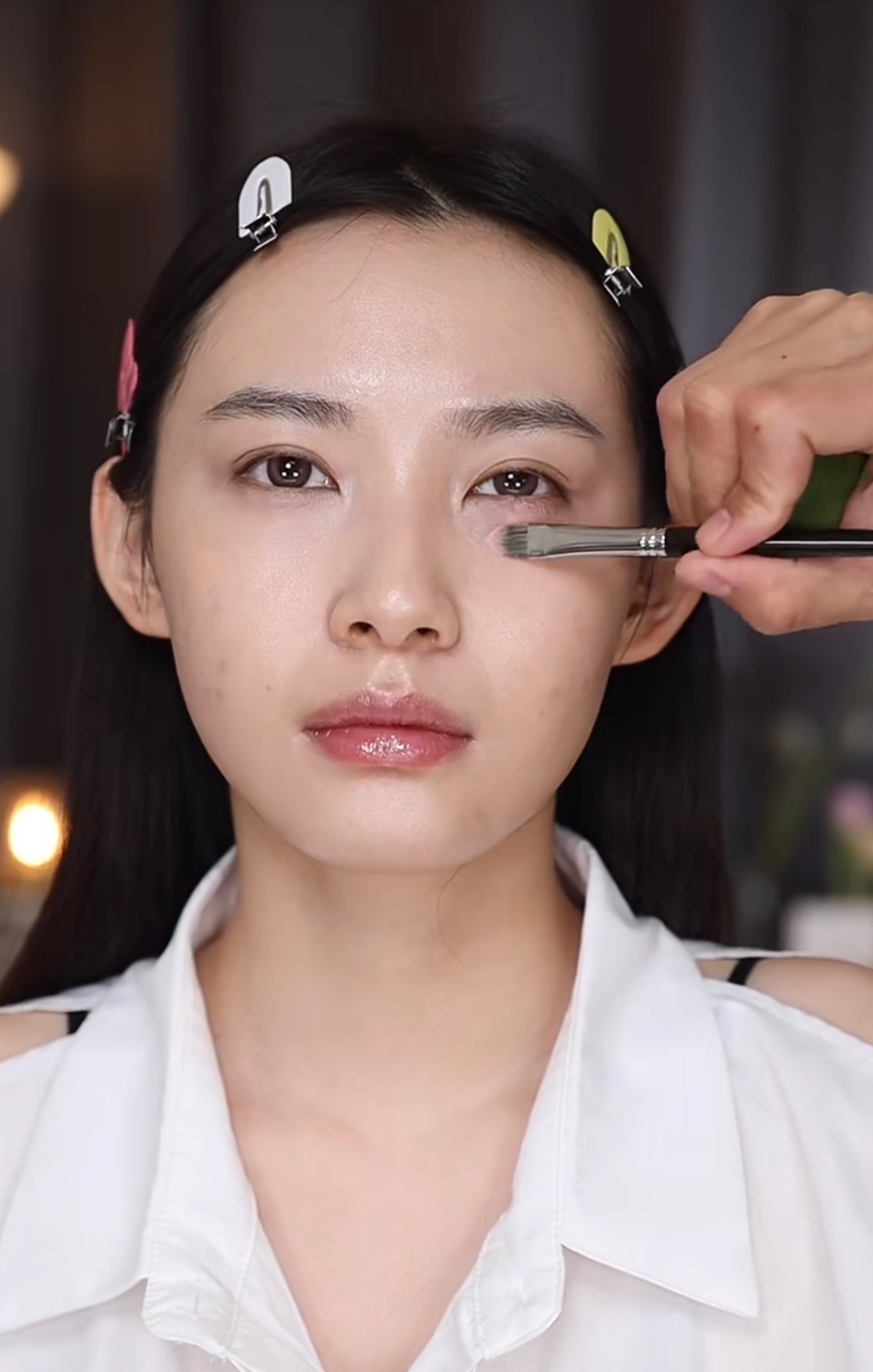 之後修容則主要是強調眼窩的輪廓感,沾取修容粉後在眉毛底部輕掃,再在眼尾位置上下掃開,加強眼部整體的骨骼感。