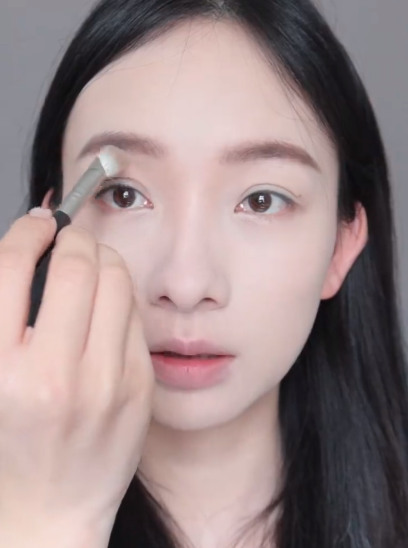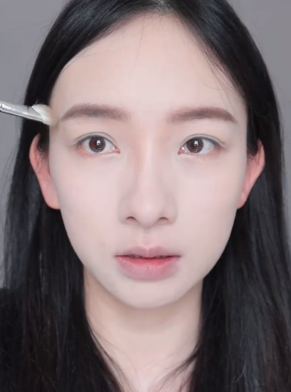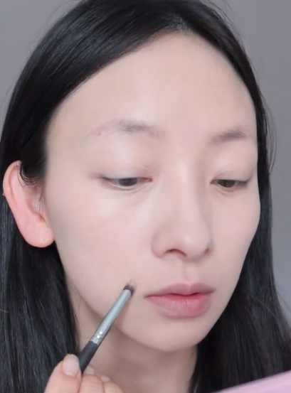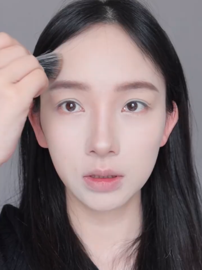 眉毛只需按照原本的眉型來填補顏色,顏色選擇灰色即可,也可以在眉頭畫上幾條自然毛流。