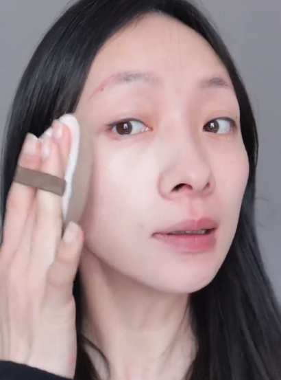 然後用氣墊粉底來增加底妝的遮瑕力,同時還提升臉部的水光感。之後再利用遮瑕膏遮蓋淚溝和法令紋,提升臉部平整度。