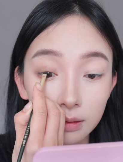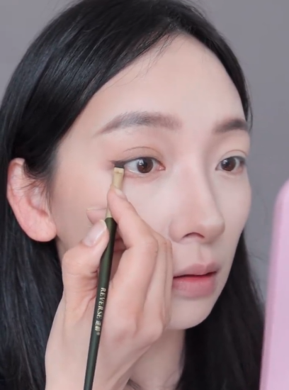 之後再使用淺色眼線筆畫出眼線,再提亮臥蠶和痴上眼睫毛就完成眼妝了!