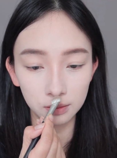 鼻子方面,則在鼻頭兩側畫出一個「V」字,令鼻子在視覺效果上看起來變窄,改善蒜頭鼻,再在鼻樑兩側位置垂直畫上陰影,瞬間變成高挺鼻子。