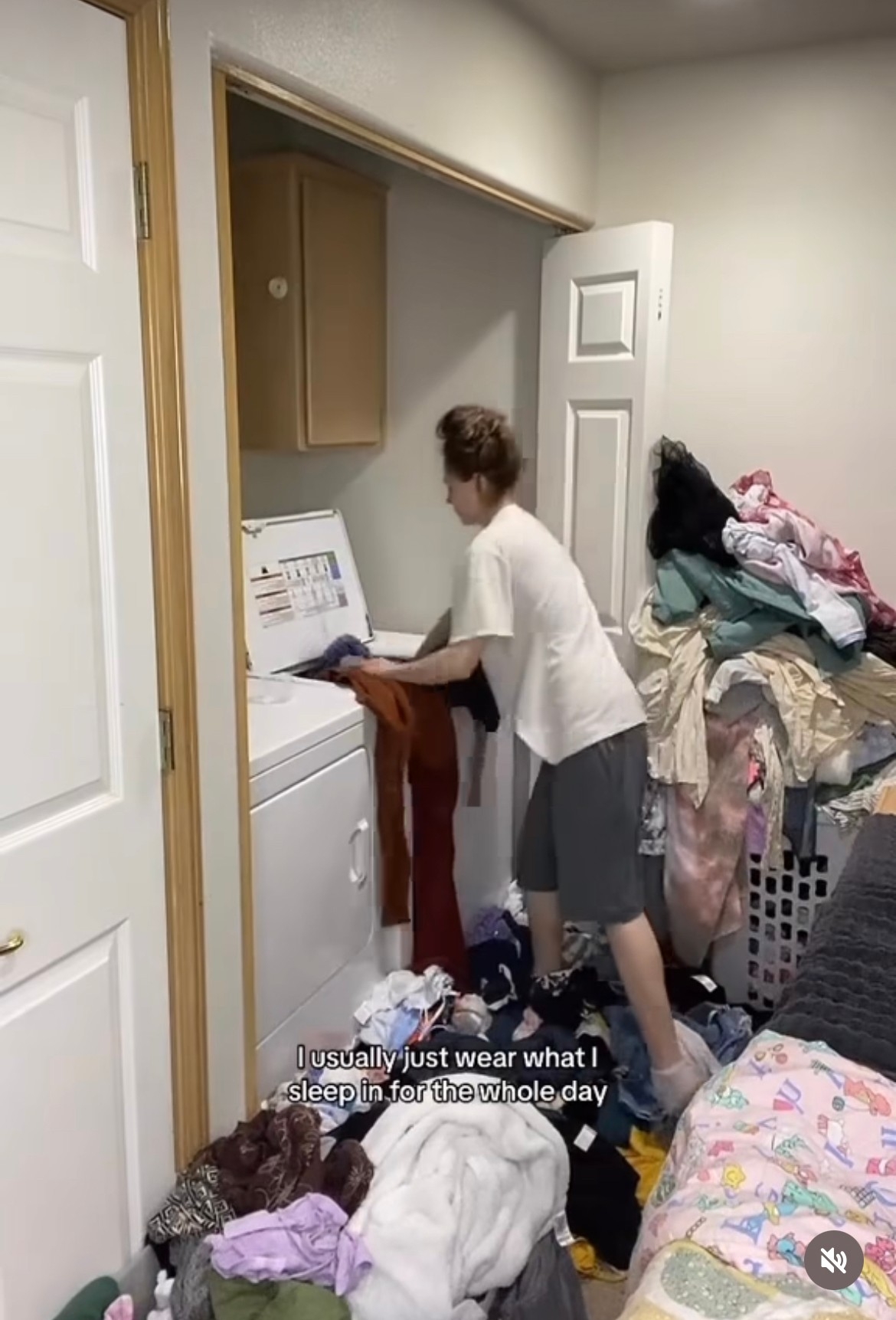之後又看到洗衣機旁邊堆滿了一大堆的衣服,而且衣服全部都四處亂放,已經多到幾乎看不到地板的程度,以衣服的數量估計,應該已經堆積了至少一個星期。而Amanda Rose更稱由於髒衣服堆積在地上太多,所以她每次經過都會直接踩在那些髒衣服上面。
