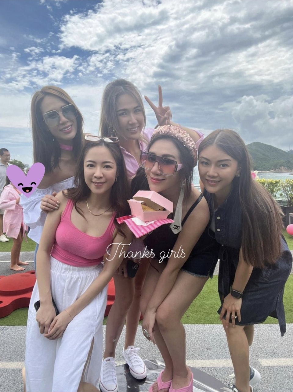 現場除了「荷包蛋」的朋友仔外,超盈亦邀請了前特首梁振英女兒梁齊昕、林恬兒、莊思明、莊思華、彭慧中等。一眾名媛的穿搭也是超有心思,配襯生日主題,相中可見超盈手拎鮮桃紅色鱷魚皮的Hermès Kelly Mini;而出名好身材的彭慧中雖身穿低調粉色小背心,但盡顯fit爆身材,相當吸睛,成功搶曬風頭!