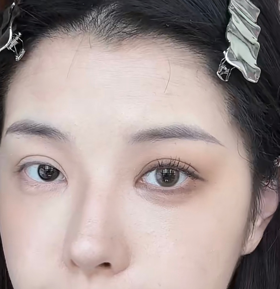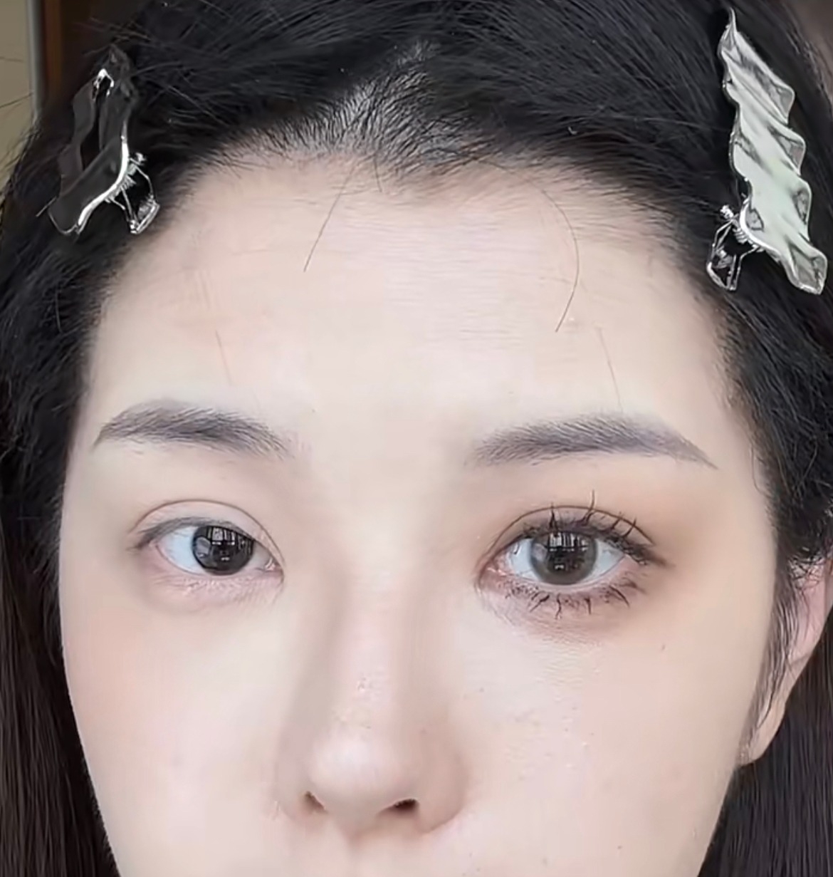眉毛只需按照原本的眉型來填補顏色,顏色選擇灰色即可,也可以在眉頭畫上幾條自然毛流。