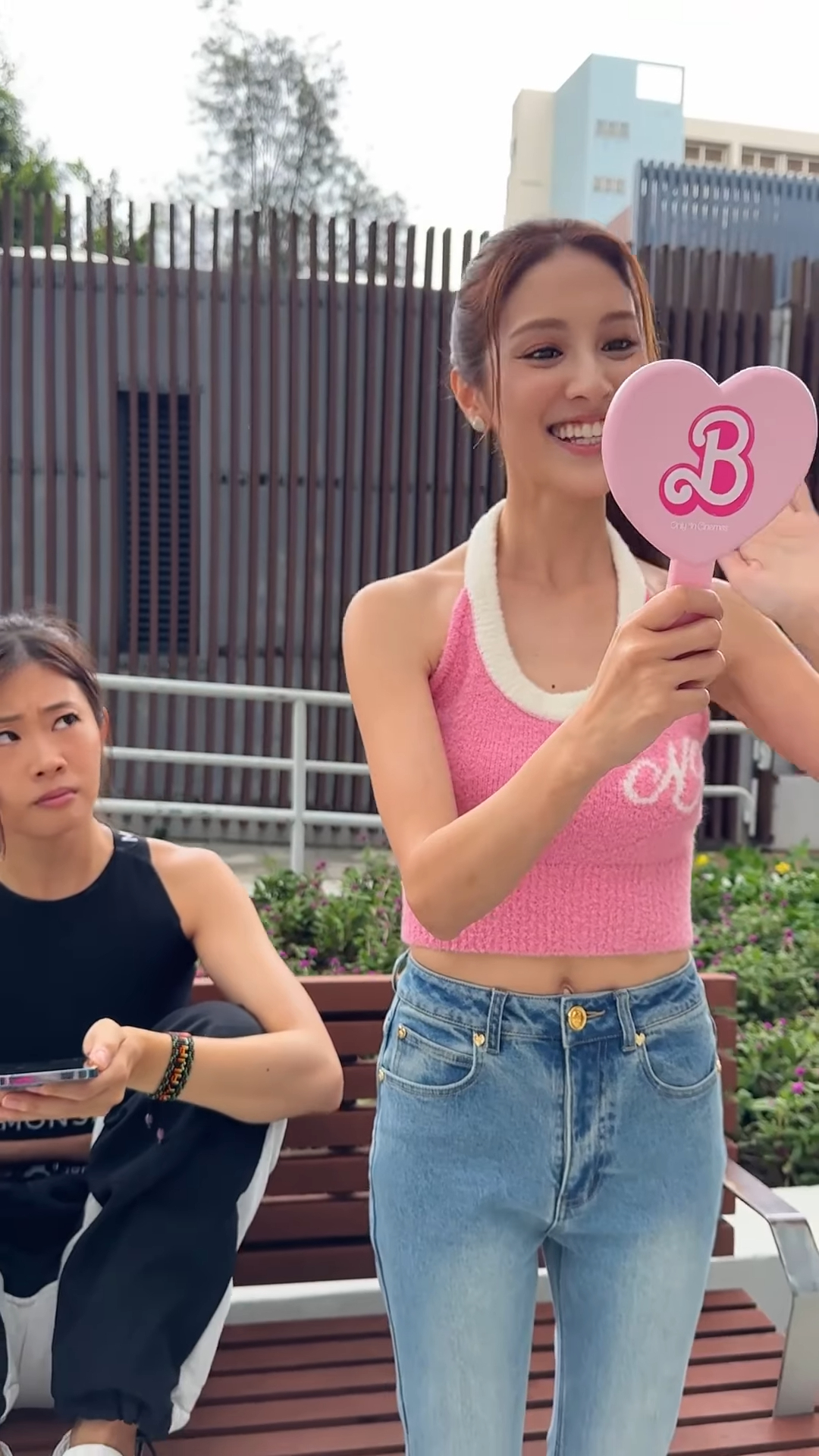 靚媽陳凱琳(Grace)經常都活躍在社交網,她當然也有緊貼Barbie熱潮,日前上傳了一段與600萬瑜伽YouTuber Emi Wong的影片,影片中的Grace身穿粉紅色背心配牛仔褲,手上拿着芭比鏡揮手扮芭比公仔,陳凱琳扮芭比公仔追住Emi Wong場面搞笑,有網民留言大讚陳凱琳的身材超fit,神還原真人版芭比。