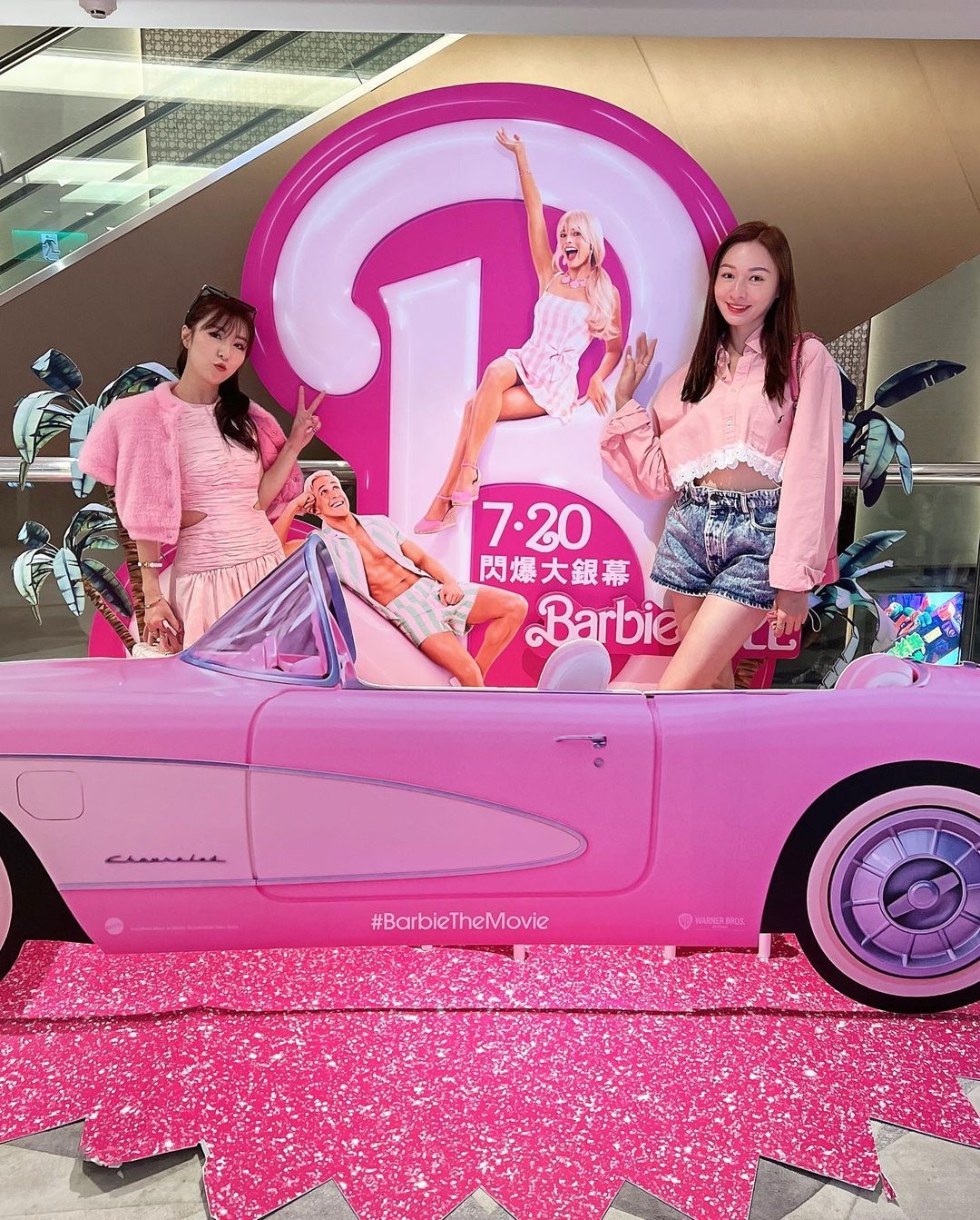 之後譚嘉儀也有穿全身粉紅Look去觀賞電影《Barbie芭比》。