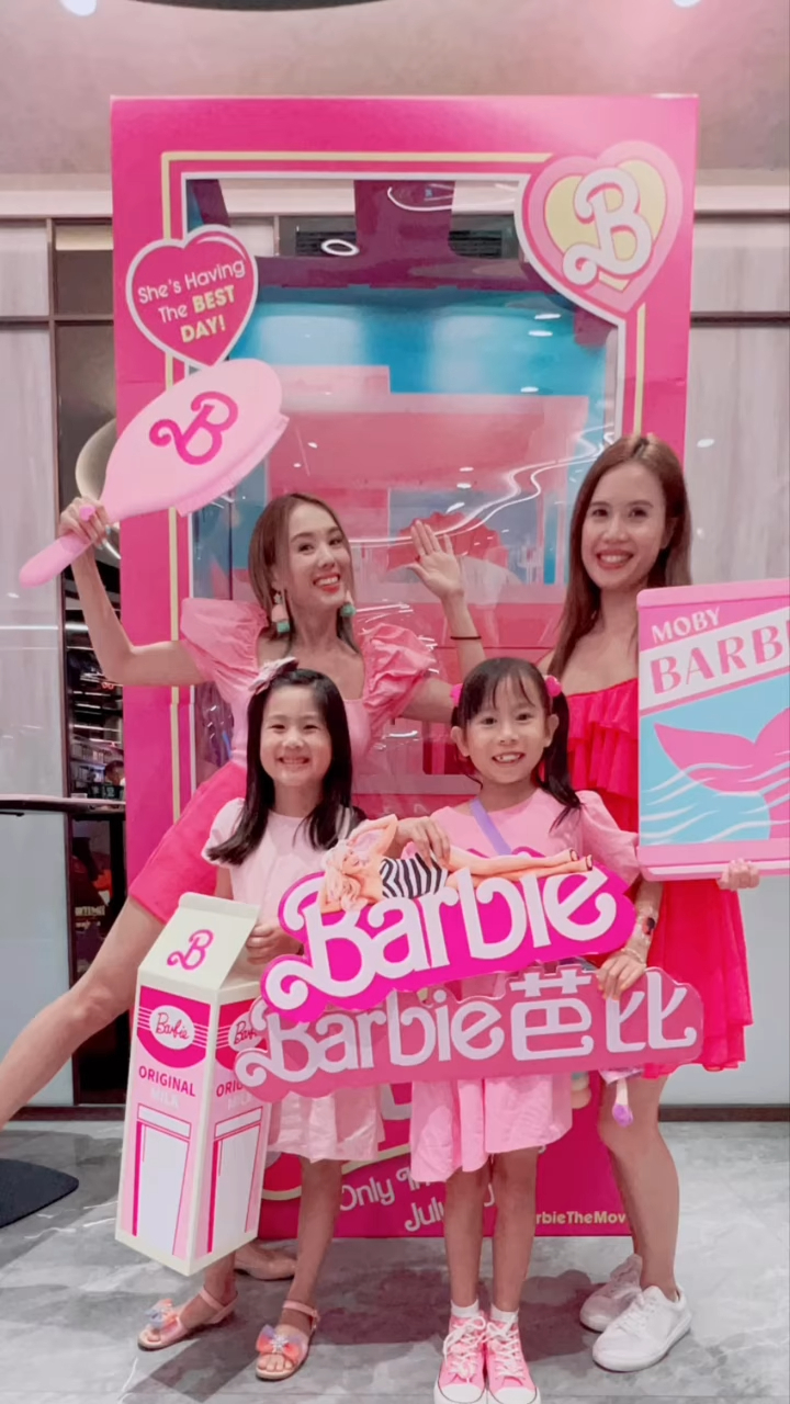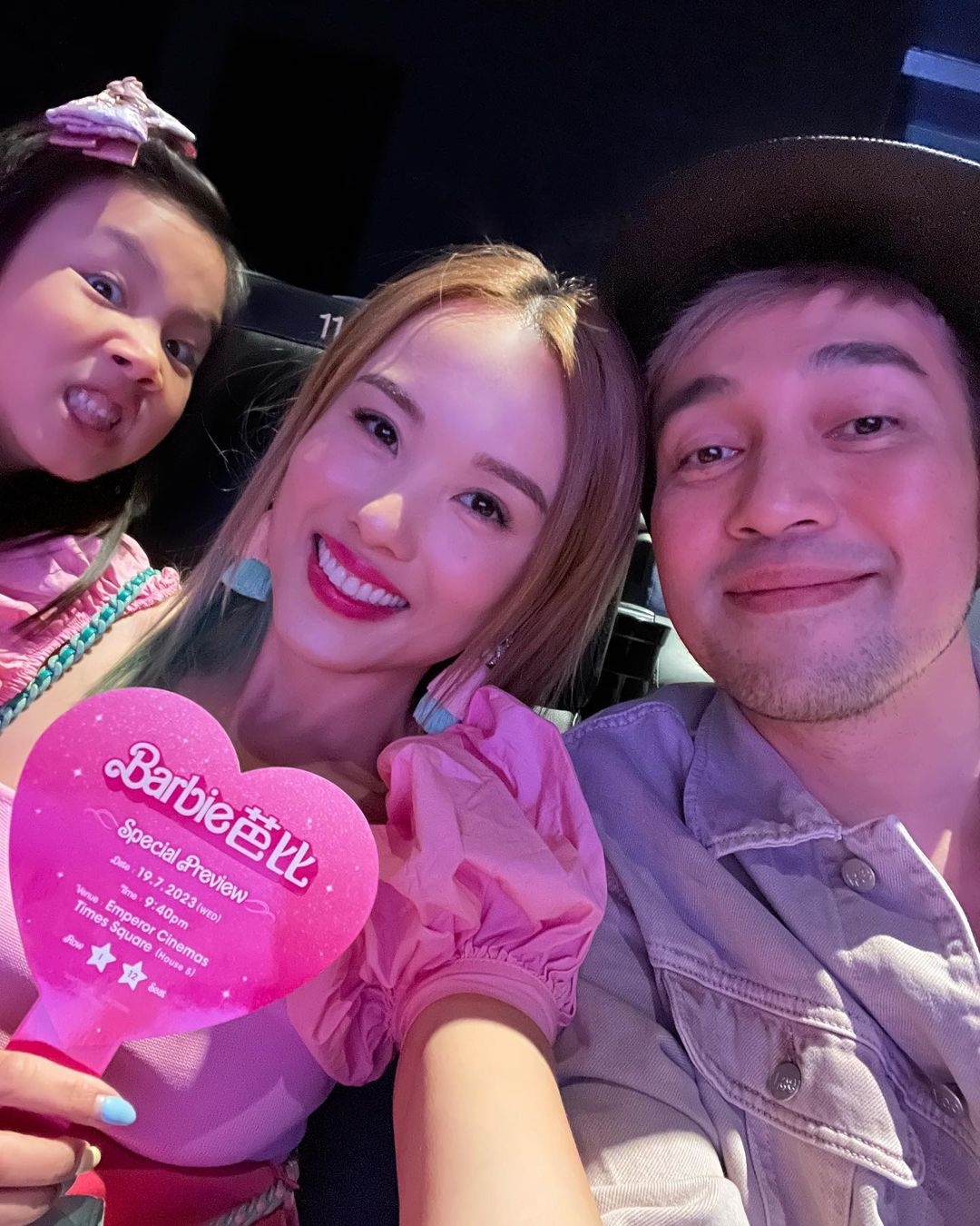 42歲楊洛婷(Rabeea)一向是辣媽身材超好,近日她也有與老公Tim及女兒去看《Barbie芭比》,兩母女一起穿上粉紅裝拍片,又開心曬出與老公囡囡的合照表示「his Barbies」。